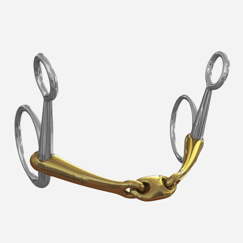 One of our many favourites is the Turtle Top with Flex Loose Ring Snaffle! This anatomically-designed, double-jointed, loose-ring bit features a flattened dome-shaped link to lower pressure in your horse’s mouth. This is one of Neue Schule’s most uncomplicated bits – the mouthpiece stays centred and arched over the tongue and remains unchanged during riding. This comfortable bit is ideal for horses with busy mouths, bringing their attention back to the reins. Made of high-copper Salox® Gold, the bit feels soft and quickly warms up in your horse’s mouth, encouraging acceptance gently.