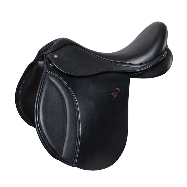 This saddle is crafted to fit compact, short-backed, and low-withered horses, including but not limited to cob-types. The T9 Low Wither GP is particularly well-suited for horses with broad shoulder movement and lower withers. Designed to eliminate the feeling of being perched, its innovative tree and panel shape allow you to sit closer to your horse. The supple, all-leather seat enhances this close contact. Adjustable Velcro knee blocks provide personalized support, while multiple girthing options ensure a secure fit on wide or highly active horses.