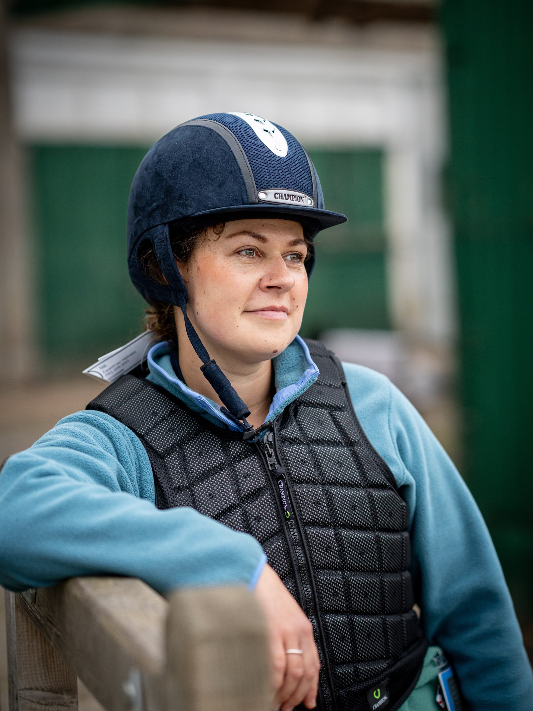 This low-profile riding helmet is made of a fibreglass shell and conforms to all modern safety standards. Its navy, synthetic-suede finish gives an elegant appearance while a breathable microfibre crown padding and highly-ventilated airflow system ensure your comfort.